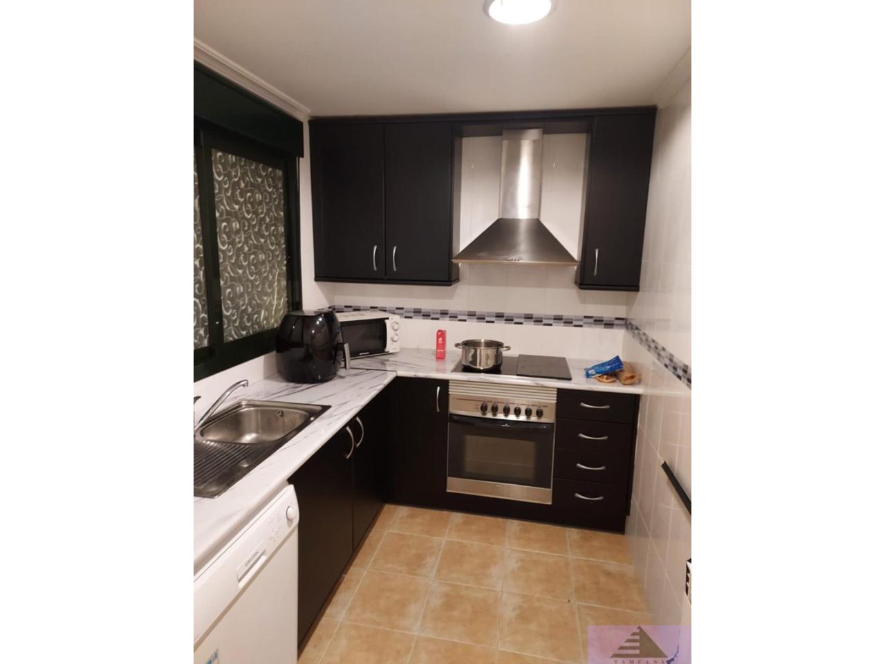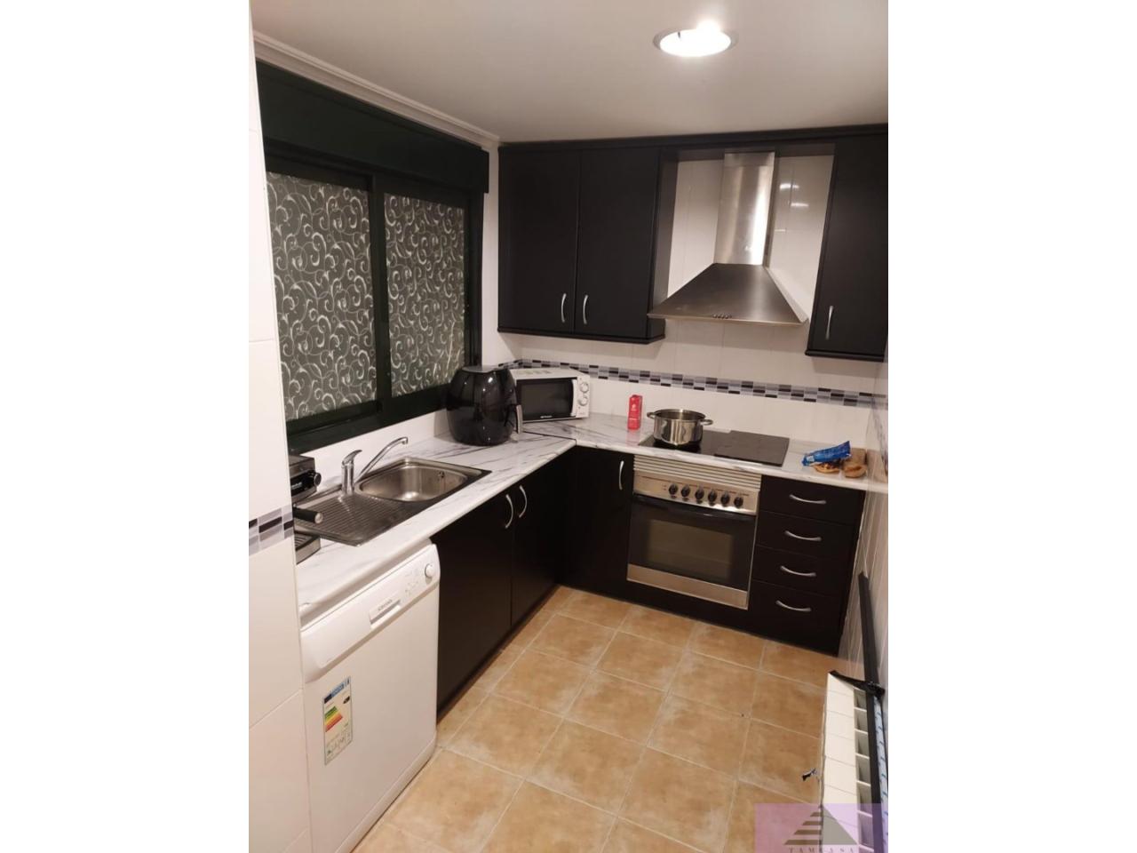 Piso de 84m construidos, con 2 dormitorios con armarios empotrados, salón independiente con salida a terraza de 8m con toldos, cocina vinilada, amueblada y equipada con horno, campana y vitrocerámica, tendedero cubierto y 2 baños completos.